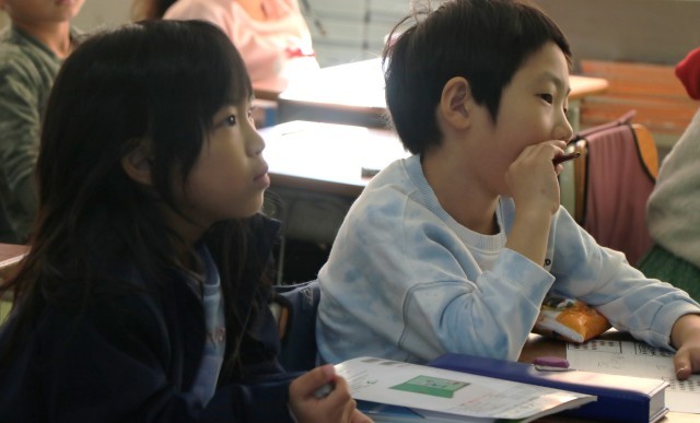 2年生算数の様子です。クラスの友だちが自分の考え方解き方を発表しています。その発表を聞く子どもたちの姿が、あまりにも一生懸命ですてきだったので思わず私も発表を聞いてしまいました。こんなに真剣に聞いてくれるクラスなら、少々間違っても安心して、自信をもって自分の考えを発表できますね。