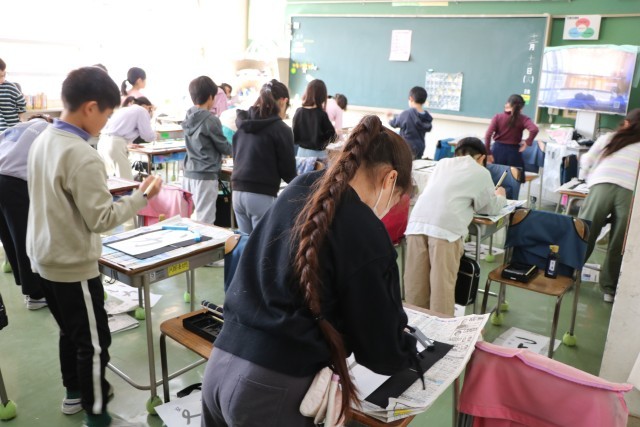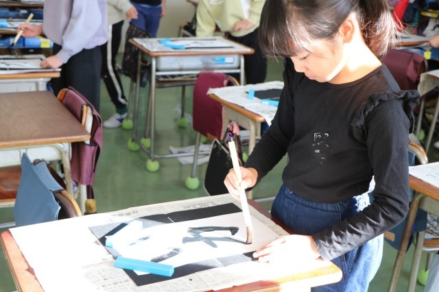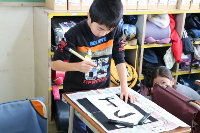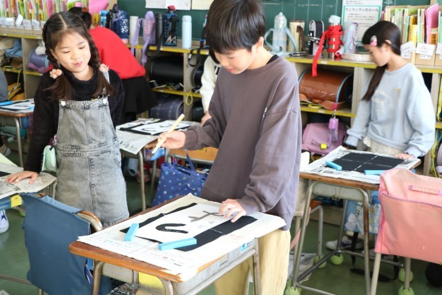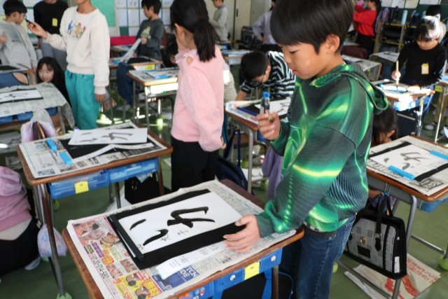 3年生書初めの練習の様子です。練習用紙をなぞって書いたり、指でなぞりながら確認したり、とても丁寧に練習しています。初めての毛筆での書初め、子どもたちの作品が楽しみです。