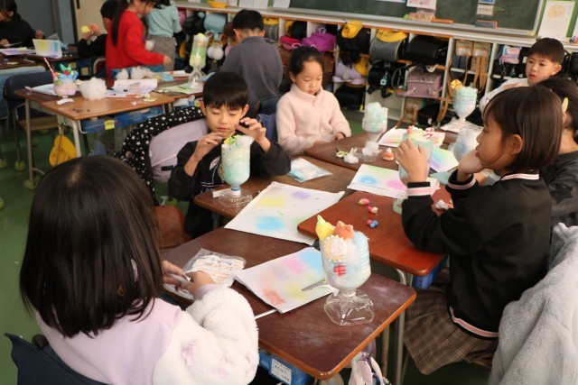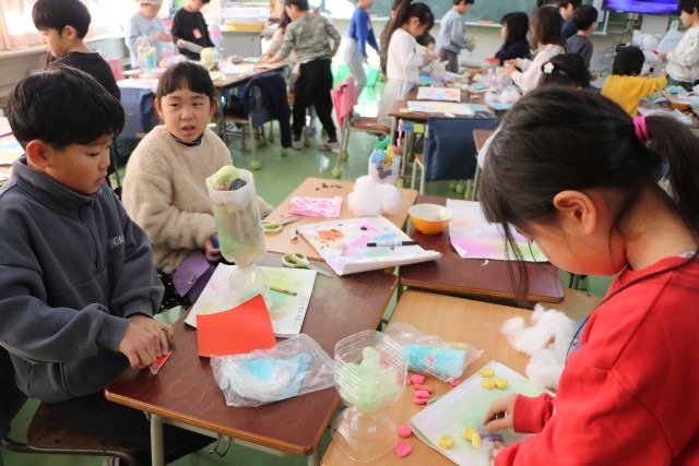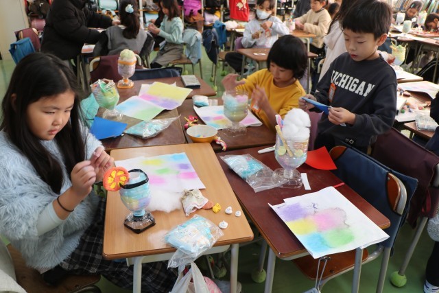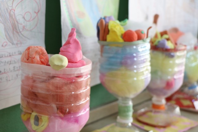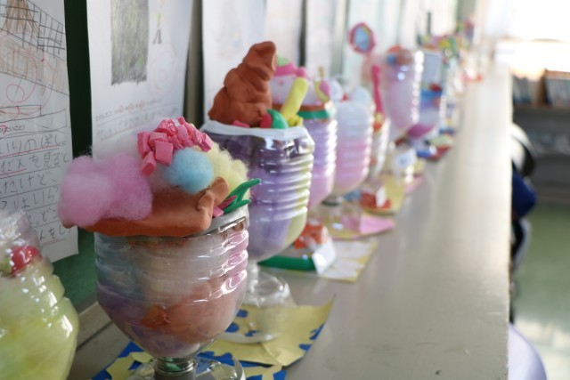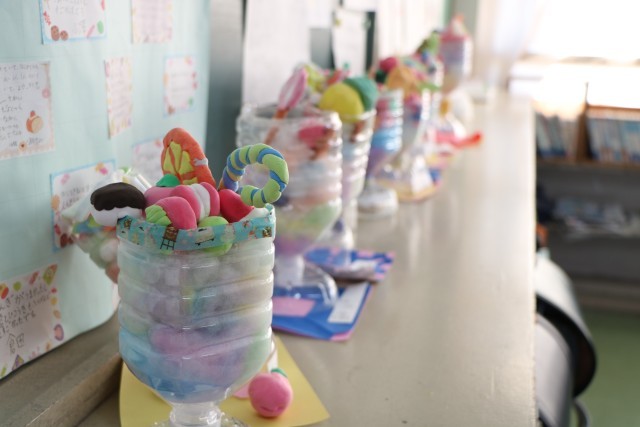そろそろ「パフェ」も完成に近づいてきます。完成したら並べてみんなで鑑賞です。
