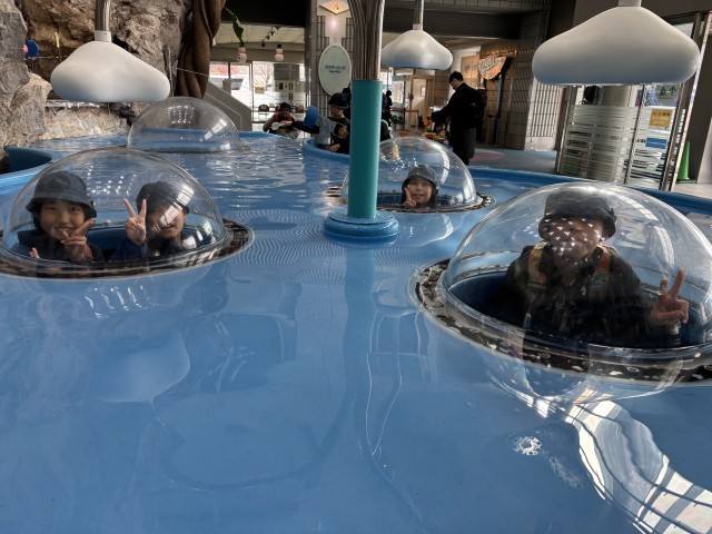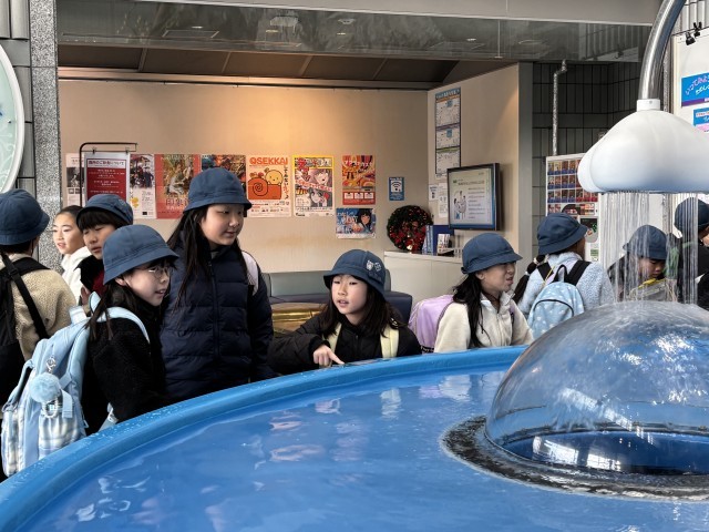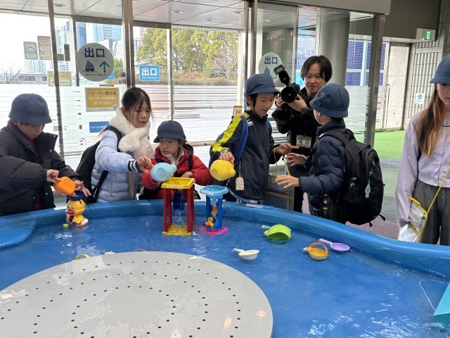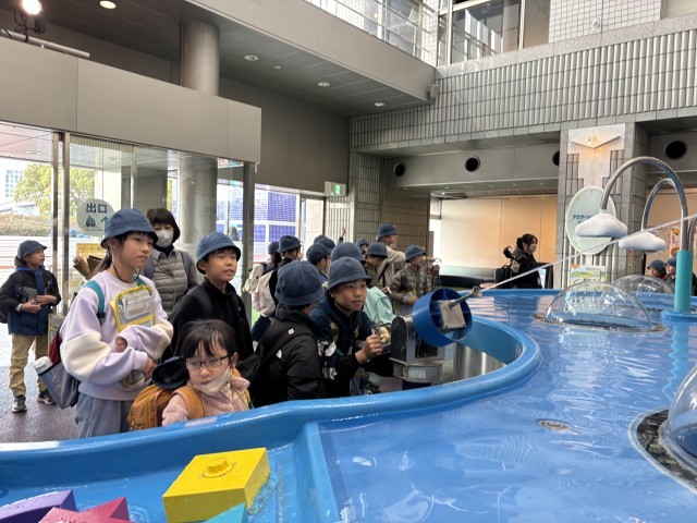 2つ目の見学は水の科学館です。グループごとに見学したり遊んだりしています。