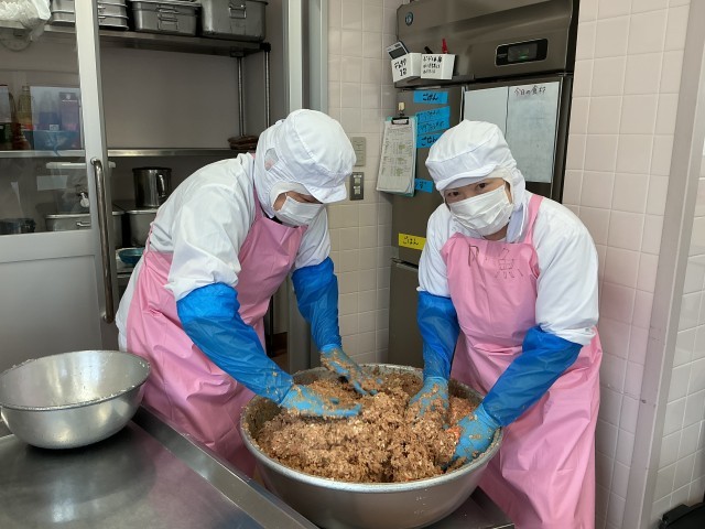 さんが焼きは千葉県の郷土料理です。アジとイワシのすり身、とりひき肉、生姜、ねぎなどの野菜と味噌などの調味料を混ぜ合わせ、オーブンで焼いて作りました。