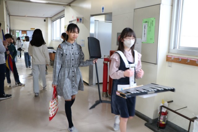 先週の金曜日6年生と5年生は、鼓笛隊のパートごとに顔を合わせて1回目の練習をしました。2学期は4日間しかありませんが、今日から朝練習が始まります。今朝の朝練習開始時刻には5年生はもちろん6年生が何人も登校しています。音楽室に楽器を取りに行く、練習場所の表を確認して今日の練習場所を確認し練習に向かう。そんな基礎的なことから6年生はしっかり教えてくれます。