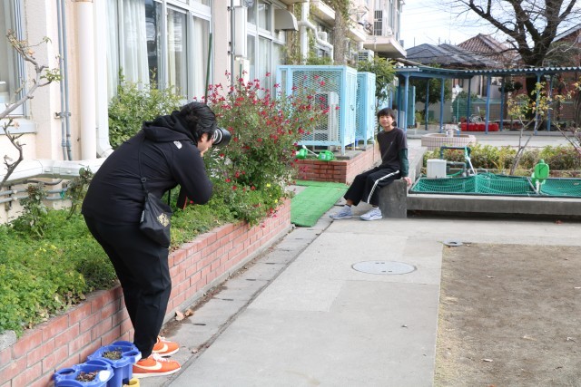 小学校の卒業アルバム個人写真は証明写真のような写真が多いですが、砧小学校は違います。A4サイズの個人写真で、自分のお気に入りの格好で、お気に入りの場所で撮影してもらいます。屋上で撮影したい子、校庭で、池の横で…まるでモデルさんのように声をかけてもらいながら個人写真を撮影します。今日も屋上、校庭、教室での撮影が進んでいました。卒業なんだ…としみじみ思い寂しくなります。