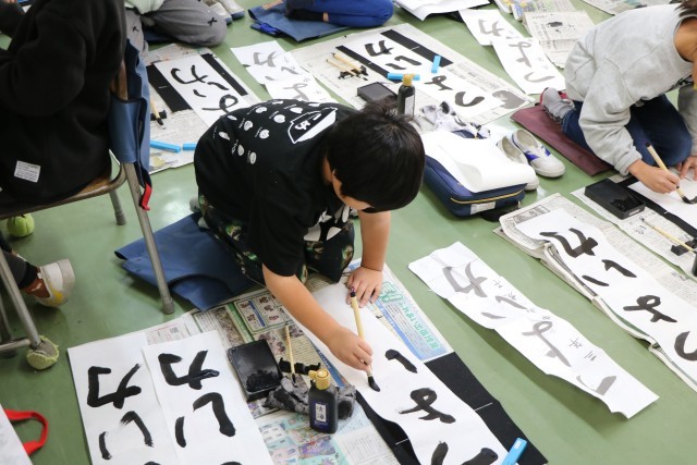 今年書初めは、冬休み家庭での宿題にせず学校で書くことにします。先生や友達と一緒に、一文字一文字の書き方のポイントや全体のバランスなどを確認してから取り組んでいます。12月は2学期の総まとめの気持ちで、1月になったら新たな気持ちで、心も整えて書くことが大切です。