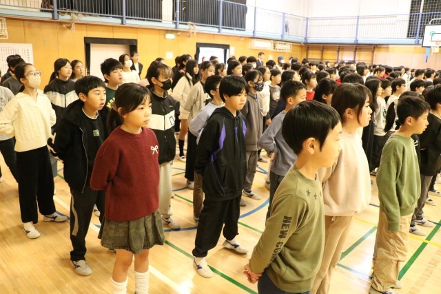 今日は2学期の終業式です。子どもたちの姿勢に、いつも以上に一人ひとりの意思が感じられとても立派でした。子どもたちには、毎日の学習、友だちとのかかわり、行事への取り組み、話を聞くこと、粘り強く最後までやり抜いたことなど様々なことに真剣に全力で頑張ったことの積み重ねが、一人ひとりの成長につながっている。学校は休みになるけれど、頑張ることはお休みにしないで、家でできること、しなければならないことに頑張ってほしい。という話をしました。