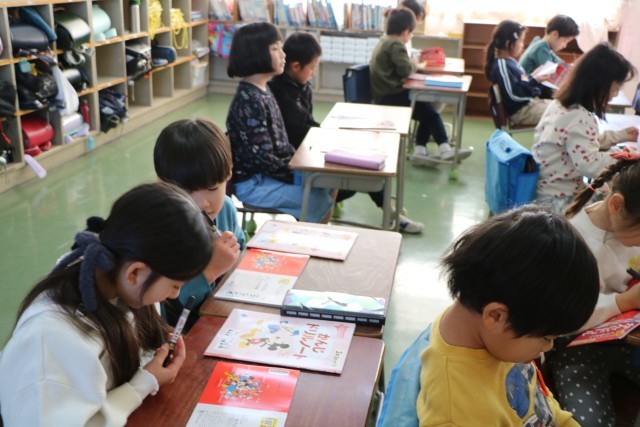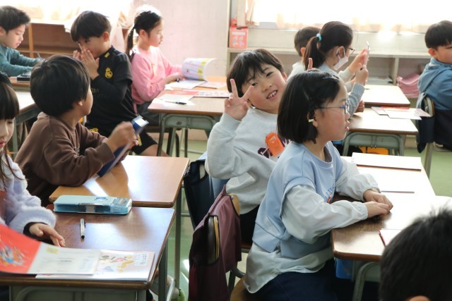 新しいドリルをもらって嬉しそうな表情も、2年生ならではです。