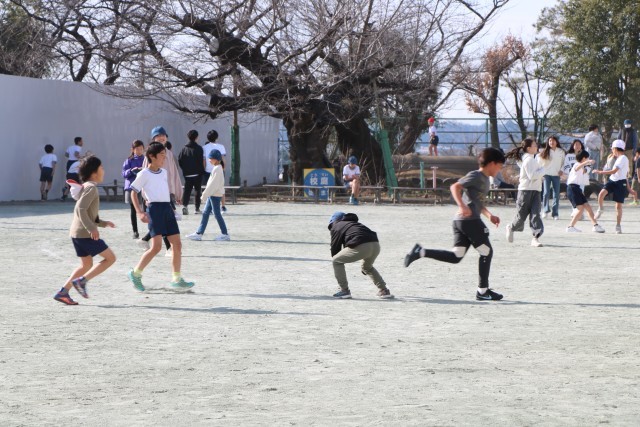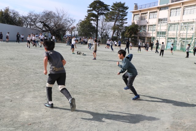中休みは高学年遊びでした。日差しが温かく外遊びを存分に楽しめる時間でした。