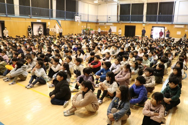 全校ランランランの後は体育館で全校朝会です。今日は「いじめ」について話しました。冬休み、1人の生徒に対して集団で暴力をふるう動画が拡散されたというニュースが世間をにぎわせました。小学校ではあのような集団暴力などは考えられないことですが、言葉の暴力はどうでしょうか?そしていじめる人もそれを周りで知っていながら何もしない人も、いじめる人と同じです。砧っ子はどちらにもなってほしくありません。ある記事に「いじめは人の本能が深くかかわっていることだから、なくならない。犬や猿の社会でも・・・」というショッキングなコメントを読みました。でも私は、人間だからこそ「いじめをやめよう」「いじめをしない」という思考・行動ができると思います。砧っ子はぜひそうあってほしいと考えます。「誰かを守るためのチクリは正義」です。「悪を守るためのチクらないは、その人も悪」です。一人でいじめられる人を助けることは勇気がなかったら、友だちにも声をかけて、先生にも相談して、ぜひ声を上げてほしいと思います。もちろんいじめをする人になってほしくないですが、いじめを見て黙っている人にもなってほしくないです。砧っ子が真剣に話を聞いてくれていたことがとっても嬉しかったです。