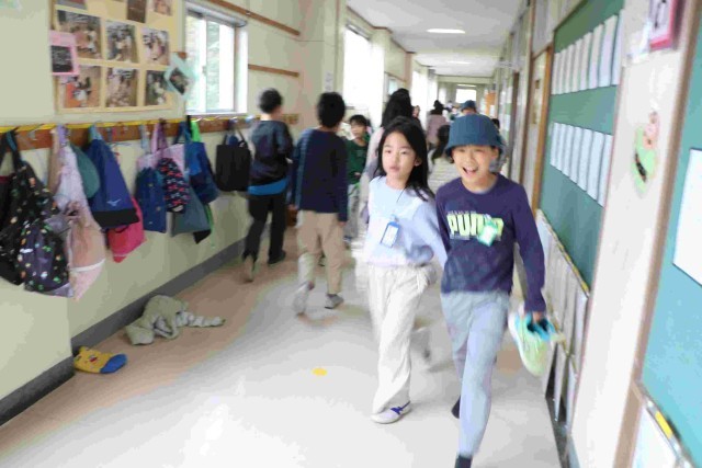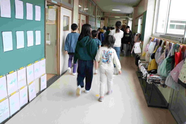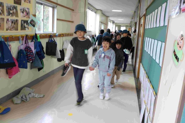 写真は、恒例の4年生による1年生のお迎えです。4年生も高学年として役割をもっているのですが、もう慣れたものです。4月に5年生になったら、さらに班の中心となってもらいます。