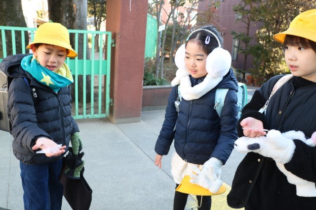 連日の寒波で、雪こそ降らない東京ですが毎日寒いです。そして毎日登校時に氷のお土産が届きます。今朝は校庭のホースの中の水も凍っていて子どもたちは楽し素に遊んでいました。