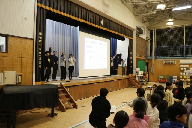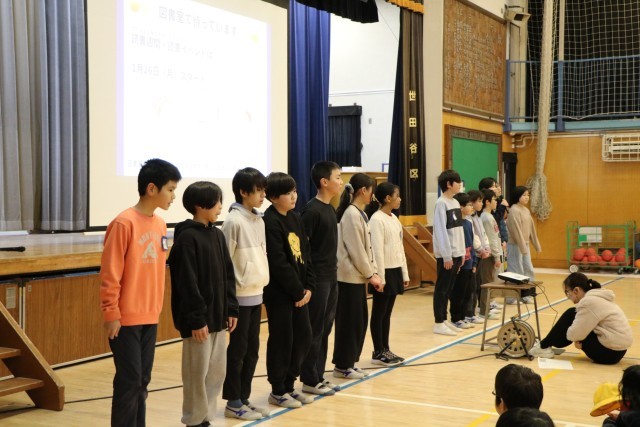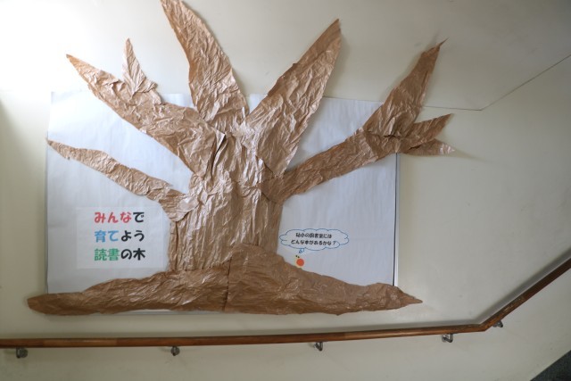 今は枝だけの木ですが、葉っぱが増えていくのが楽しみです。図書委員は、読書の木の準備はもちろん、朝早くから集まり今日の集会のための練習を重ねてきました。図書委員会!頑張っています。