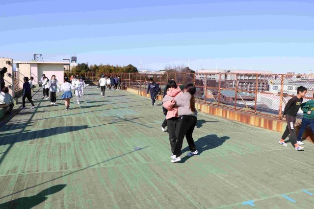 校庭遊びは今まで通りです。教室遊びの学年は、屋上か教室、または、体育館か教室で過ごすことを選べるようにしました。改築工事が進んで校庭で一度に遊べる学年が限られた時のために、遊び時間・運動時間を減らさないようにする取組として、屋上・体育館遊びを試験実施しています。