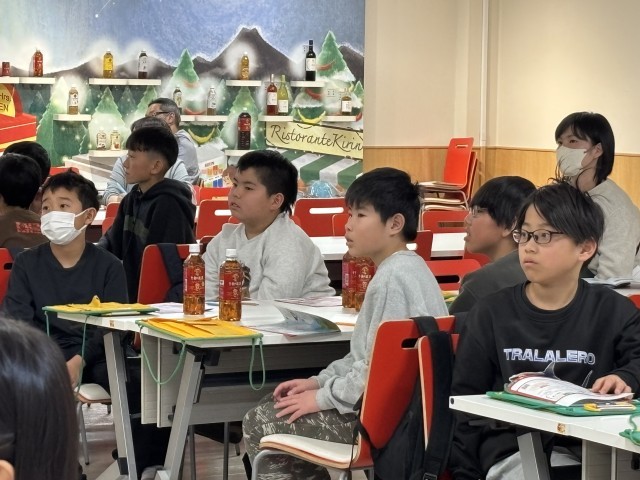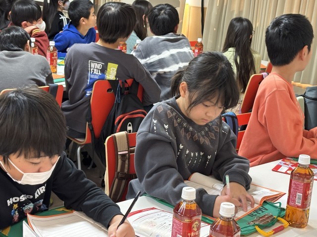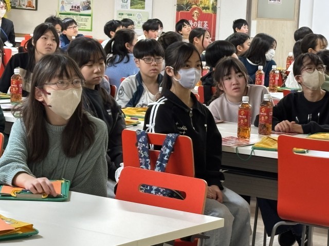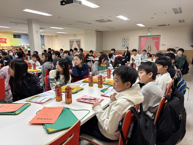 工場の様子を動画やお話しで説明していただきます。メモを取ったり耳を傾けたり、真剣に勉強しています。