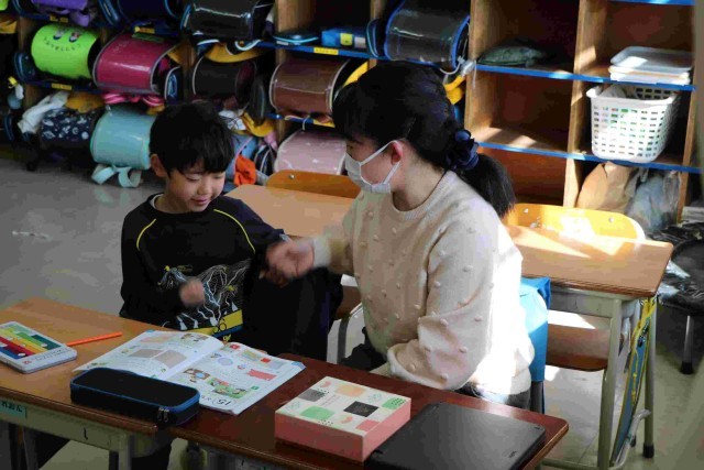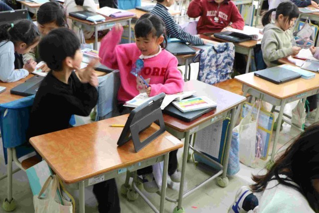 2人組になり、じゃんけんに勝つと1マスずつ色を塗れます。楽しく取り組みながら、最後はどちらが広く塗れたかを「○マス分」で比べます。学年が上がっていくと、これが「○㎠」で比べるようになるのですね。