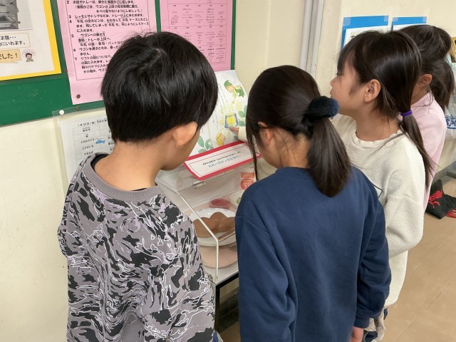 お話給食も今日が最終日です。お話給食期間中は給食サンプル前にはいつも以上にたくさんの子どもたちが集まっていました。