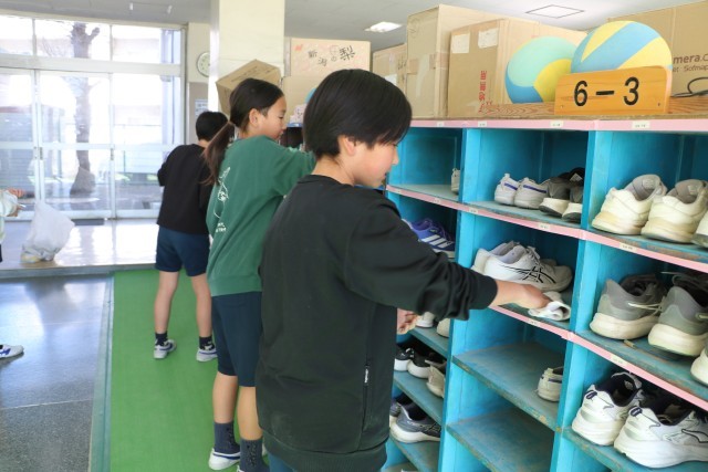自分の学年ではない下学年の靴箱の掃除をしたり、体育館の掃除をしたりしています。ありがとう!6年生!!