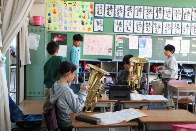 5年生鼓笛朝練習準備の様子です。45分から練習が始められるように登校するはずが、初めは早い登校もままならない5年生も何人かいました。教えに来てくれる6年生の方が早く登校しているパートもありましたが、いまでは5年生が部屋の鍵を開けて進んで準備をしています。そしてそれよりも早く、担任の先生が部屋を暖めているのです。もちろん6年生の先生も、教室や廊下から5・6年生に声をかけています。砧小学校憧れの鼓笛隊の活躍をみんなが支えているのです。