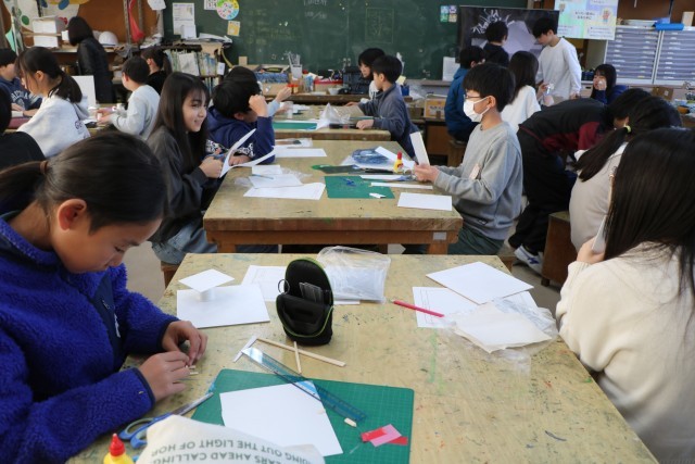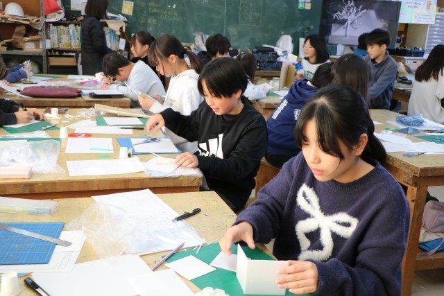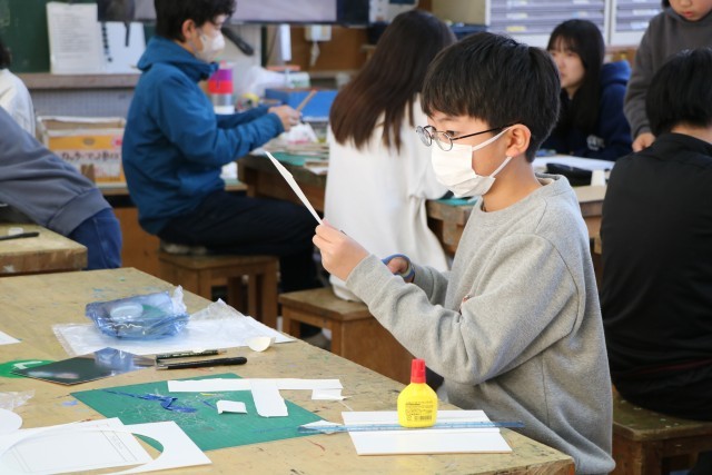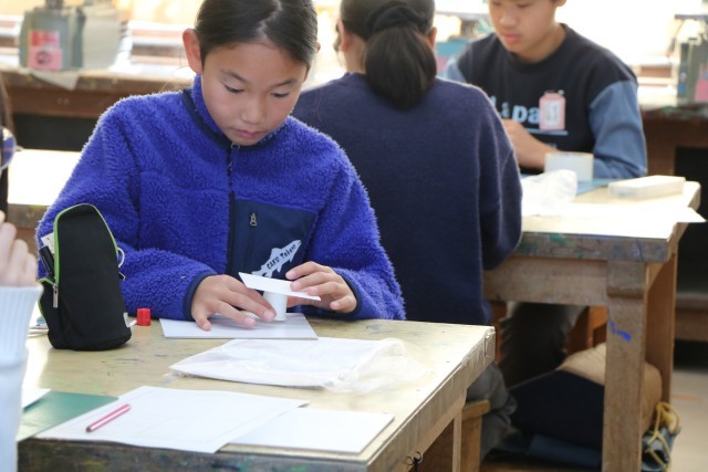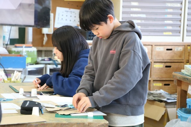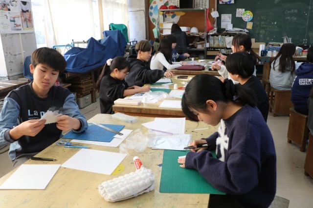 6年生図工「白い世界」の様子です。15センチ四方ほどの白い板の上に自分がイメージする白い世界を作ります。素材は紙コップ、画用紙、ダンボール、厚紙など様々です。最後に茶色い紙も白くペイントします。そしてその素材の中に一人1枚銀色のピカピカの紙を使ってもよいことになっています。ちょうどつい先日、雪で一面真っ白の世界を目の当たりにしたことも、作品作りのよいヒントとなることでしょう。6年生最後の作品、どのような作品が完成するか楽しみです。