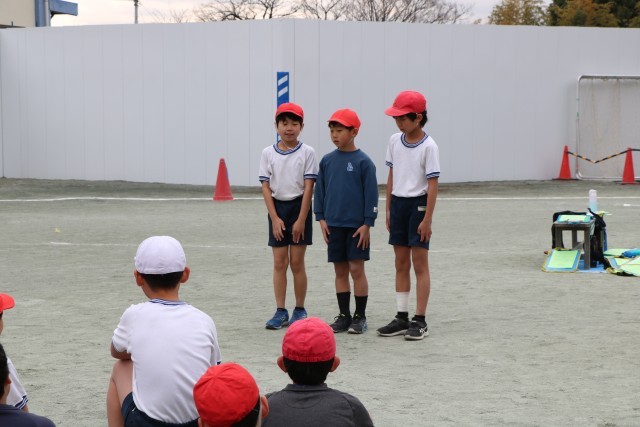閉会式の司会、終わりの言葉も子どもたちで進めました。レースの後なのでいろいろな思いを抱いての子どもたちです。ベストタイムが出て嬉しい思いの子も、もっといいタイムが出せたはずなど悔しい思いの子もいたことと思いますが、最後まで自分たちが今すべきことをしっかり考えながら行動していました。立派な4年生です!