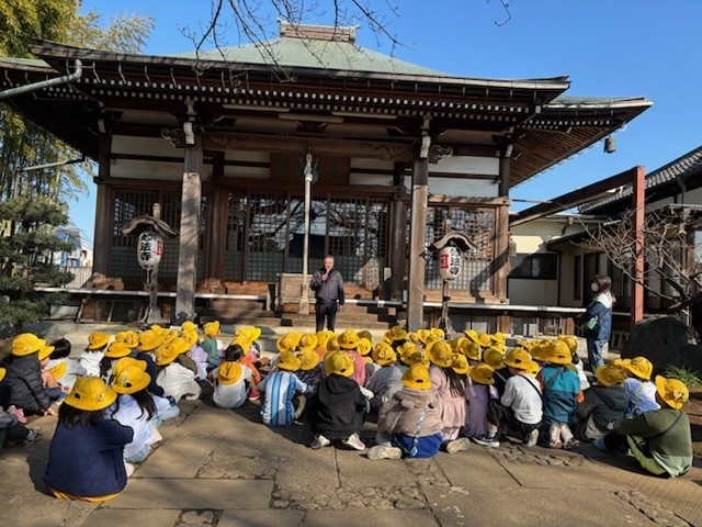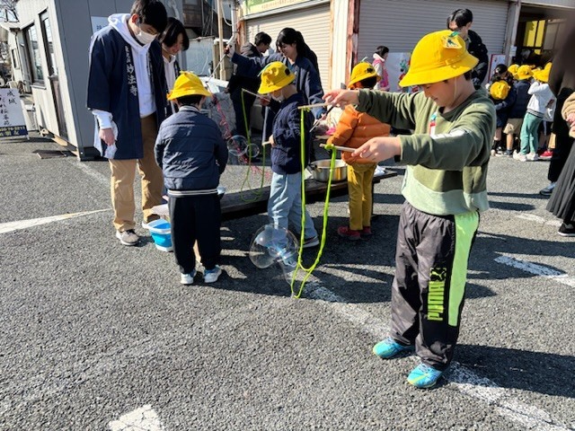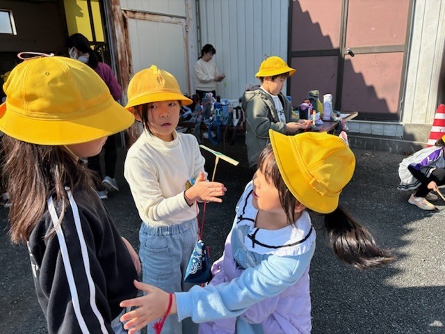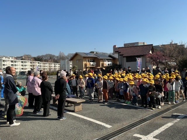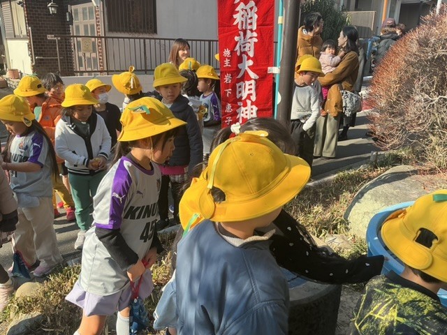 写真は1年生の様子です。1年生は初めての二の午祭りでした。美味しいお餅をいただいてたくさん遊びました。お礼にお手玉ダンスを披露しました。