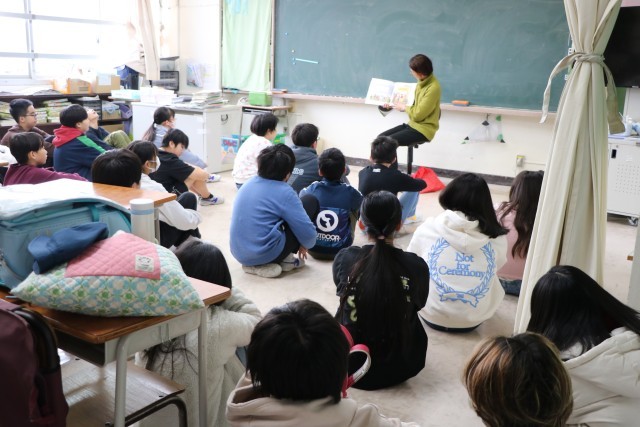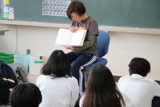 6年生は最後の読み聞かせです。子どもたちはいくつになっても本を読んでもらうのは大好きです。