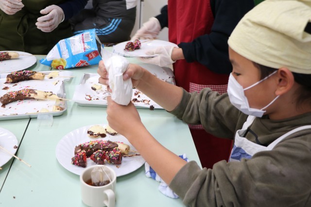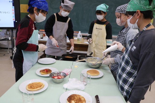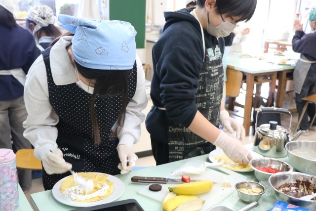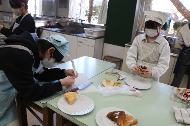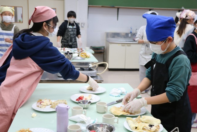 盛り付けをして、「いただきます」までもう少しです。使った道具を洗うことや机の上をきれいにすることも忘れません。