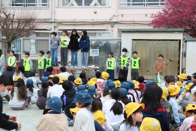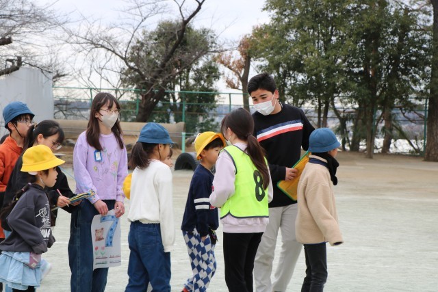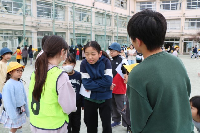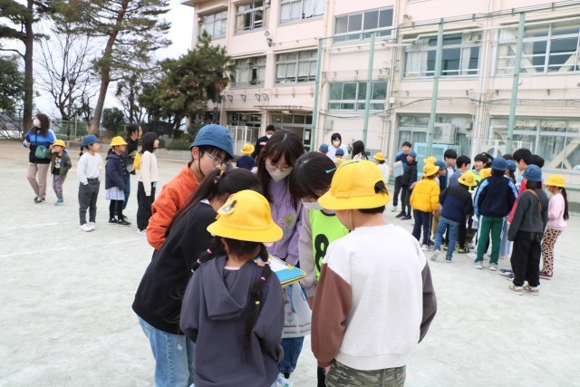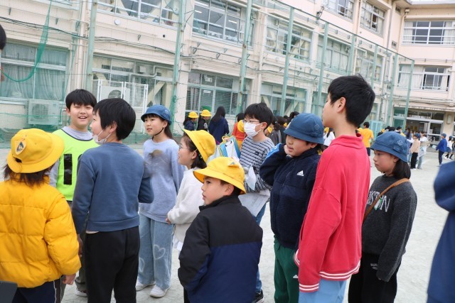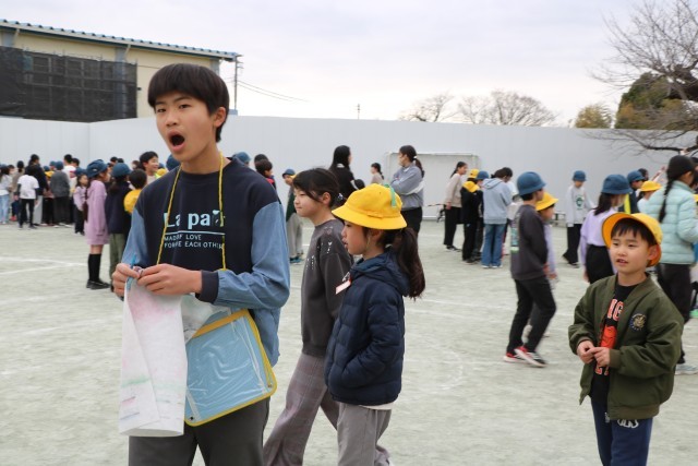 今日の集会は「仲良し班スタンプラリー集会」です。6年生の班長を中心に班ごとに分かれて、集会委員がいる11個のチェックポイントでのミッションと8個のクイズをクリアしていきます。クリアできたら、ひらがな一文字のキーワードを教えます。そのキーワードを順番につなげていくと、ある言葉が完成します。班の仲を深めながらクリアしていく楽しい集会です。