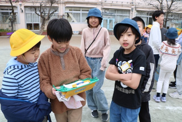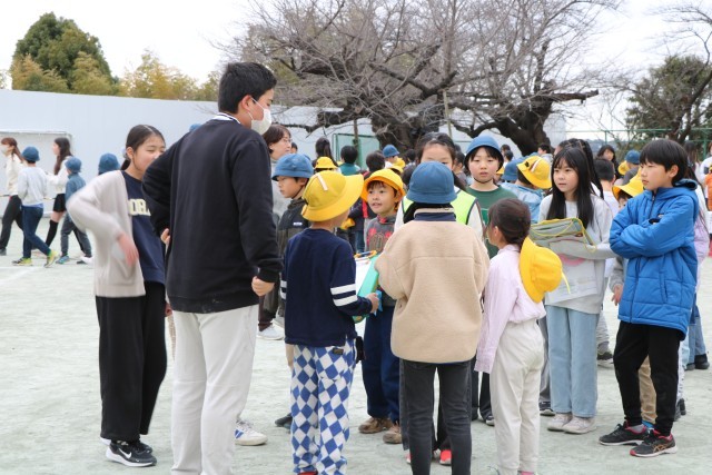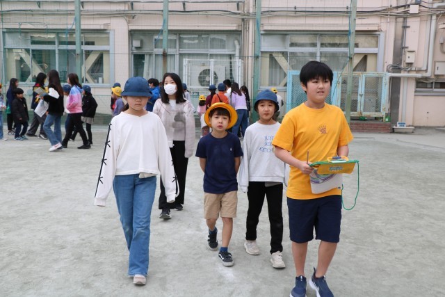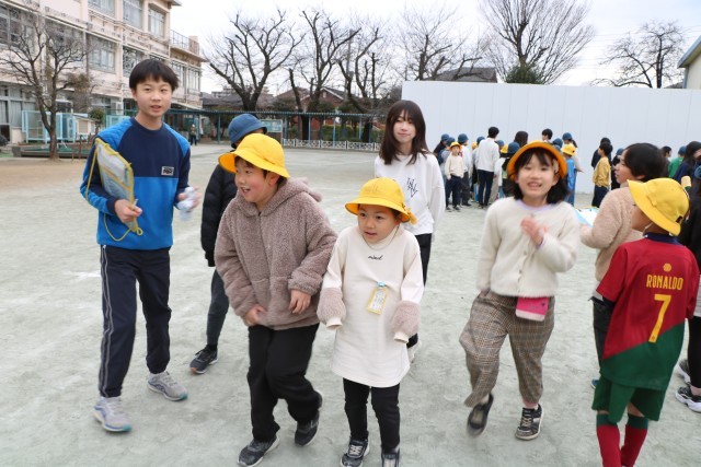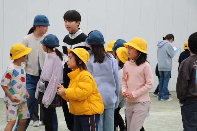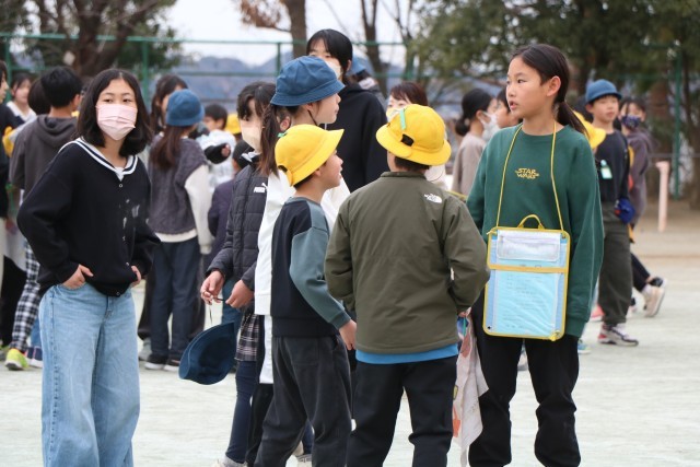 大好きな6年生班長にしがみつく下級生もいます。