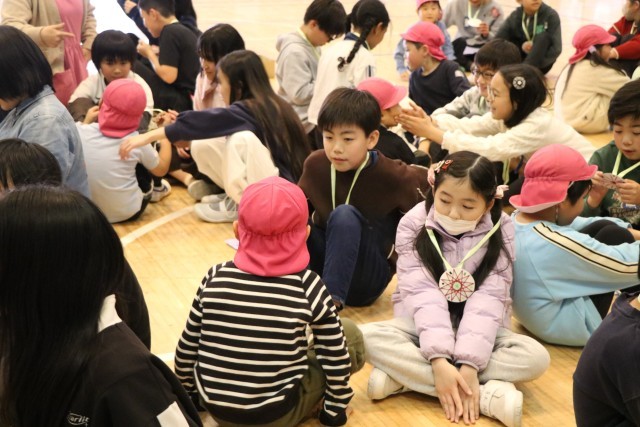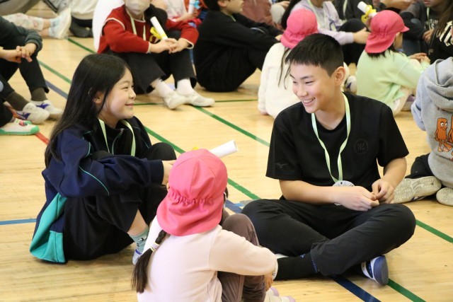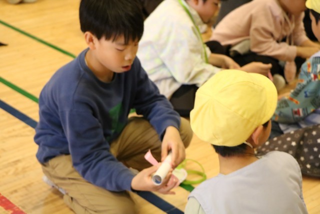 幼稚園・保育園の年長さんからありがとうの気持ちのこもったメダルをプレゼントしていただきました。直接首にかけてもらって嬉しそうな5年生です。5年生からはお礼にお手紙を渡しました。