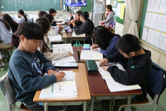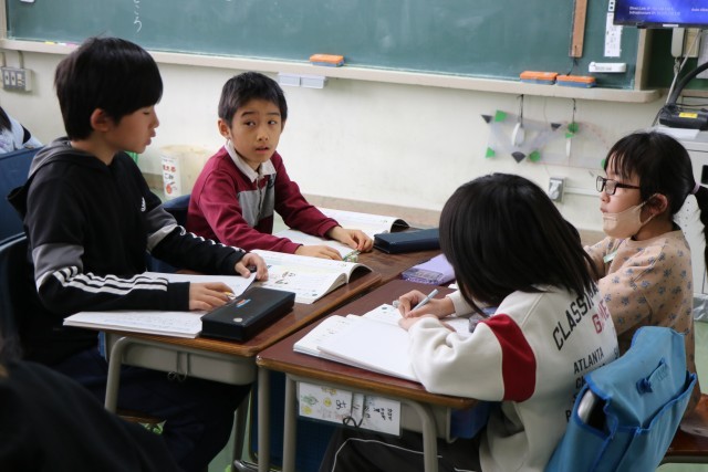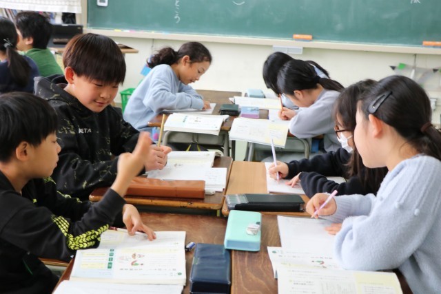 4年生国語「調べて話そう生活調査隊」の学習の様子です。この学習では、話の中心が明確になるよう話すとともに、相手の人数や関係性、目的や場などを意識し、声の強弱や言葉遣い、視線などを工夫してグラフや表などの資料を活用しながら分かりやすく説明する力を身に付けていきます。班ごとに調べたいことが決まってきました。好きな給食、睡眠時間、習い事・・・などなど。これからどのように調べてまとめていくかが楽しみです。