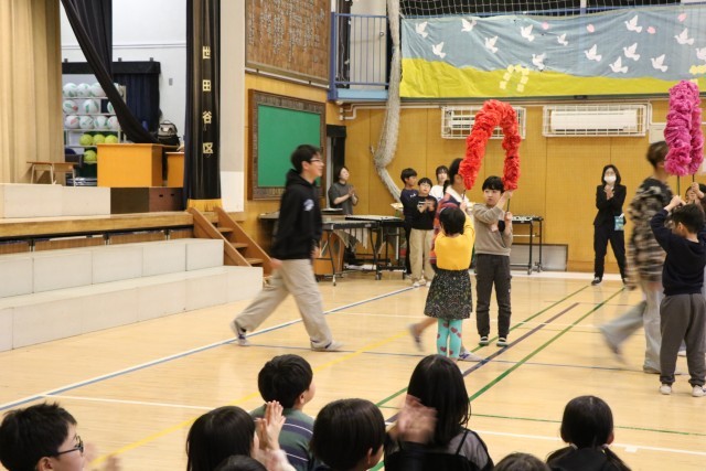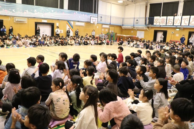 名残惜しいですが、すべてのプログラムが終了です。花道を通り退場する6年生を拍手で見送りました。