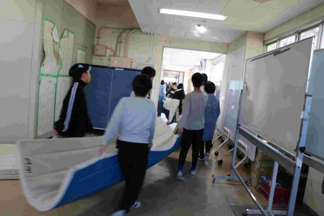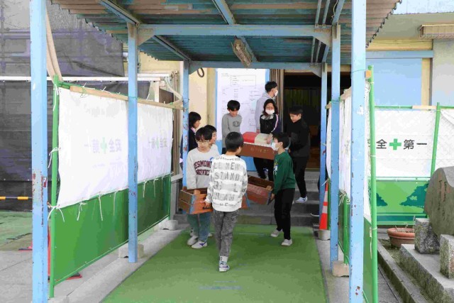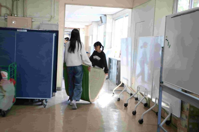 体育館裏の体育倉庫はなくなってしまったので、5年生の先生が、舞台裏に置くもの・奈落にしまうもの・別の部屋に運ぶものに分けて計画してくれました。そして5年生が手分けして運んでくれました。力もついてきて、安全にも気を付けられて、気持ちよく返事をしながらすすんで行動してくれました。新しいリーダーたちも頼もしいです。