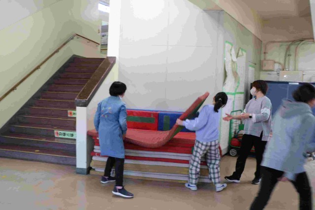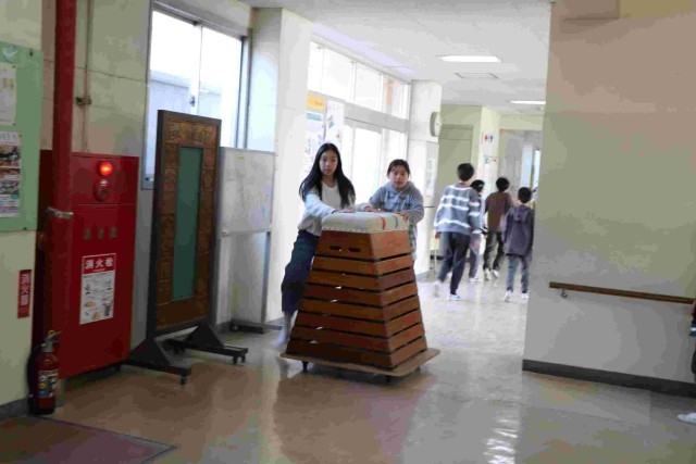 跳び箱・マット・ボールなどの体育用具も運び出しです。