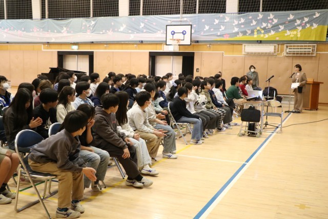 今日は、長崎で実際に被爆された方と、そのお嬢様、ご自身で「被爆二世」とおっしゃっておられましたが・・・をゲストティーチャーにお迎えして、平和について考える学習です。