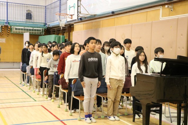 5年生が初めて卒業式の練習に臨みました。まずは大切な最後の授業であること、6年生も真剣に練習していること、在校生全員出られないので代表として参列すること・・・などを聞きました。自然と子どもたちの姿勢がよくなっていく姿に子どもたちの意欲の高さを感じます。