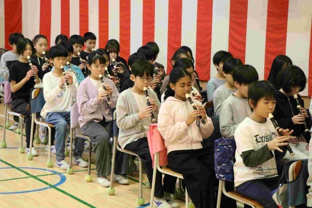 6年生の入場する姿勢・視線も素晴らしいですが、5年生の演奏する姿勢も素晴らしいです。集中した雰囲気で始まりました。