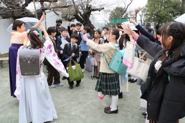 縁の下の力持ちとして、今日の卒業式を支えてくれた5年生も先生と最後の「レッツゴー」をして解散です。5年生ありがとうございました!!