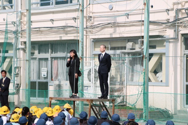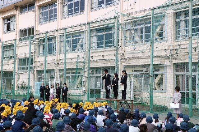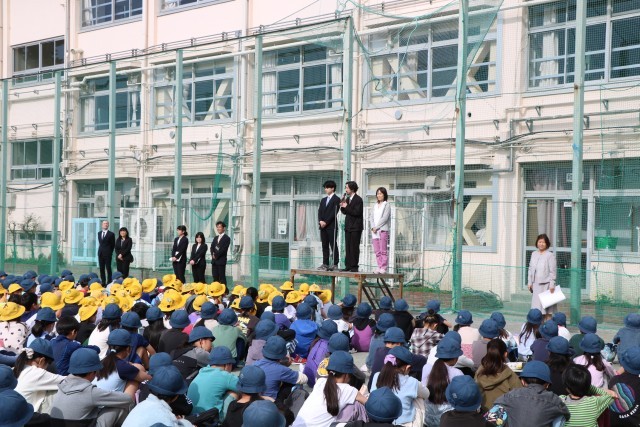 始業式の前に、まずは着任式の様子です。新しく着任された先生方を紹介します。子どもたちの間から自然と拍手が出たり、よろしくお願いしますとあいさつができたり、温かい雰囲気の中進みました。