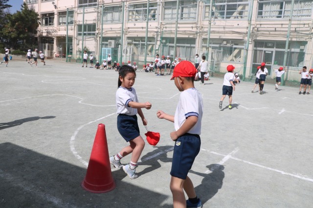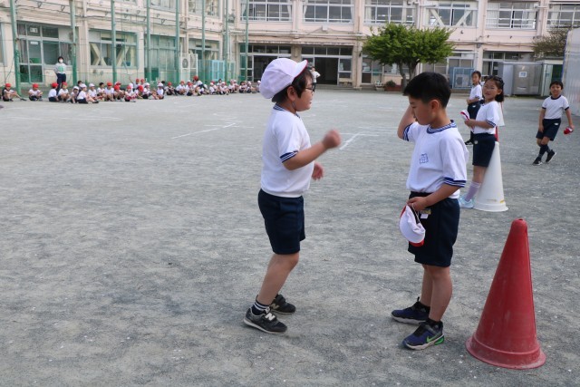 ジャンケンをしてくれる人が、とっても強いところがあって、そのチームは何度も何度も走っています。でもとっても楽しそうです。全員ジャンケンに勝って終了した時はみんな満足そうでした。よく頑張ったねと先生からも大きな拍手をもらっていました。
