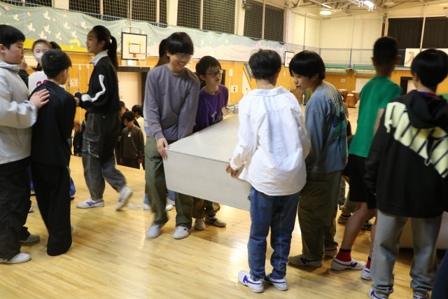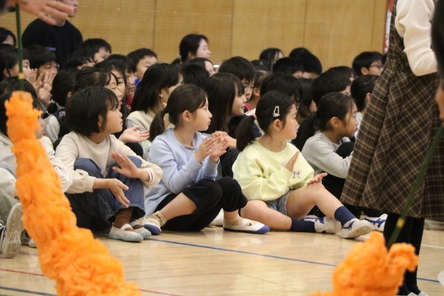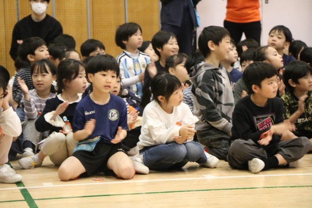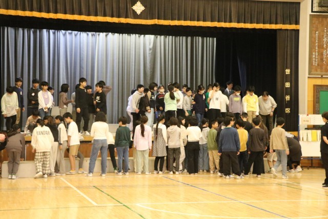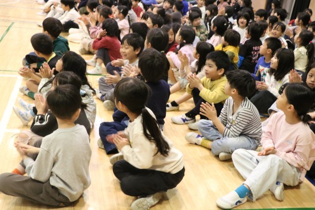 1年生の最後の一人が体育館を出るまで、みんなが拍手や手拍子で送りました。砧っ子の温かい気持ちが嬉しいです。