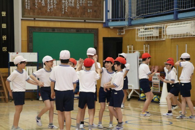 5・6年生は、今年度から教科担任制になり、体育授業も体育専科の先生が担当することになりました。砧小学校の先生は体育授業が得意な先生が多いのですが、中でも一番体育のことを勉強して、体育のことは何でも知っている先生が体育専科になりました。今日は6年生のはじめての体育です。