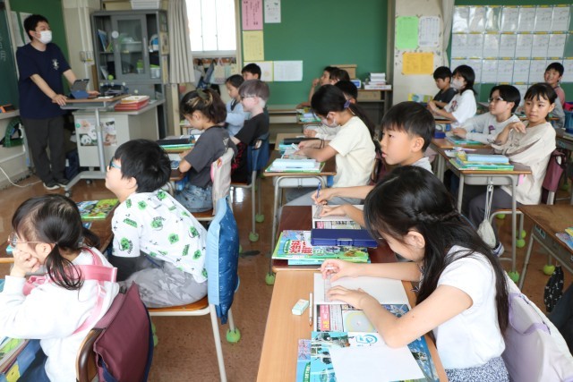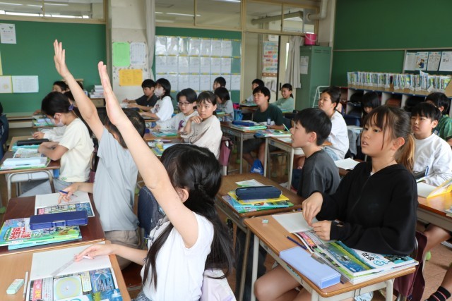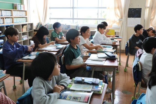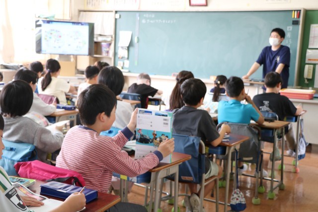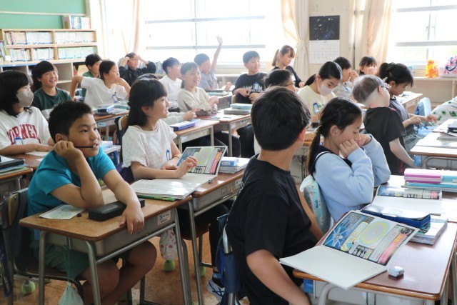 5年生社会の様子です。5年生から教科担任制となり、教科ごとにいろいろな先生と一緒に学びます。今日の社会科では世界の国々について学習を始めるところでした。子どもたちが主体的に課題をもちながら、その課題を探究し解決できるよう先生も工夫して学習を進めていきます。