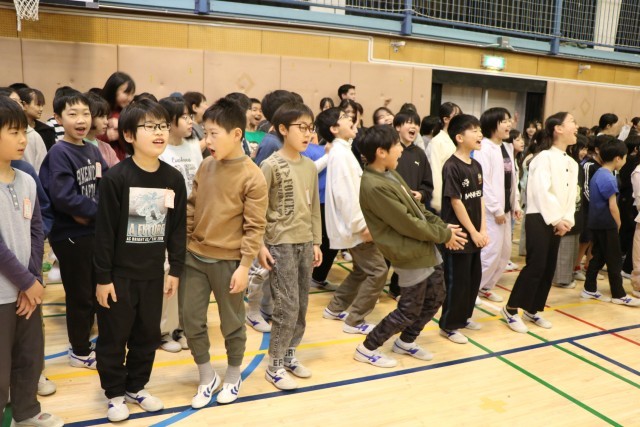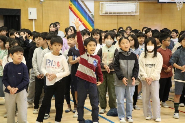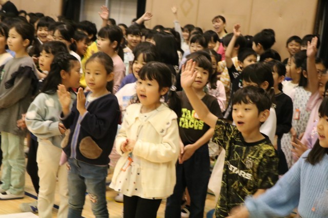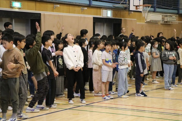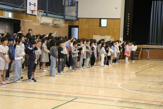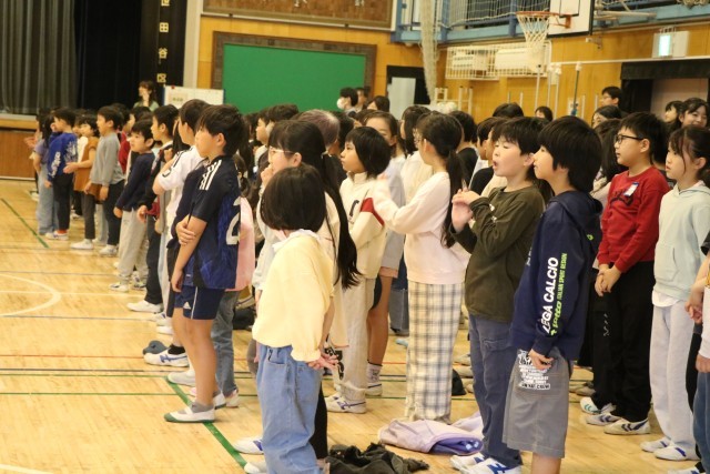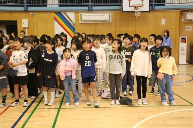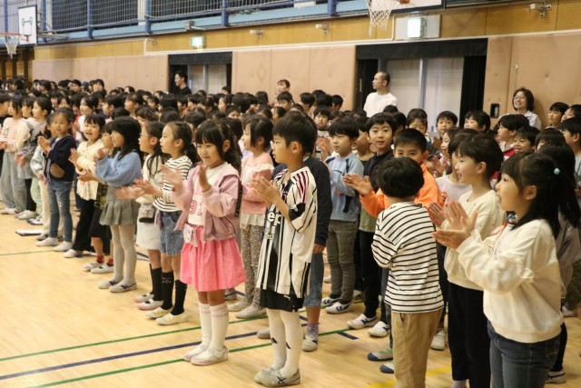 金曜日の朝は集会・朝会の日です。今日は音楽朝会がありました。今日の歌は5月8日開校記念日、砧小学校の124歳のお誕生日が近いこともあり、