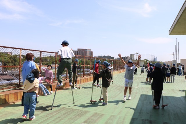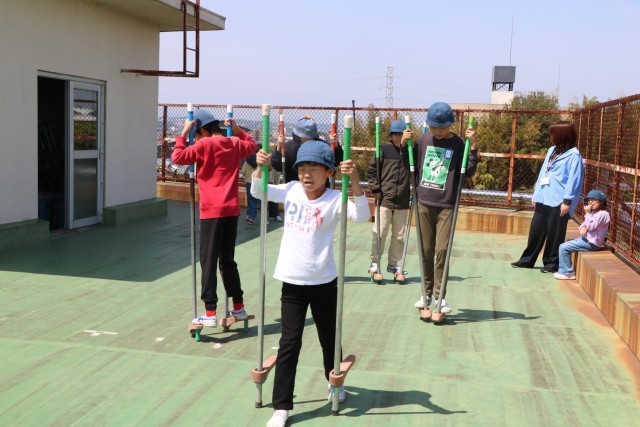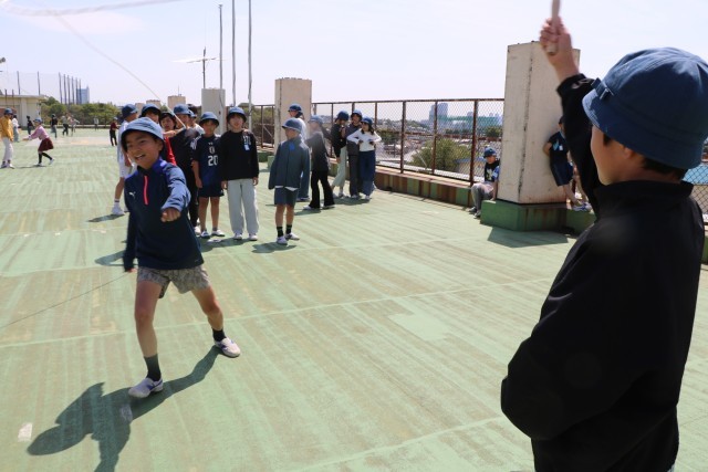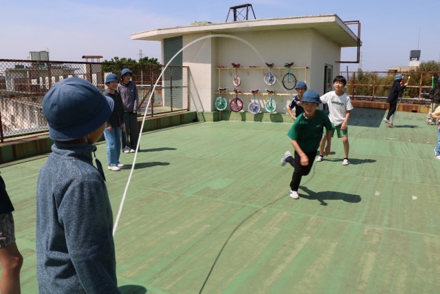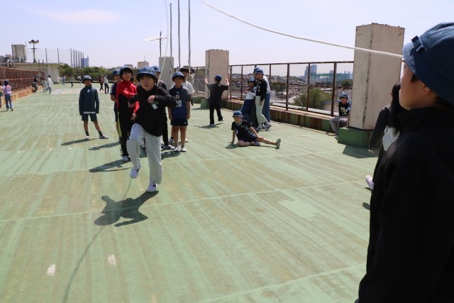 5年生が屋上で遊んでいます。日差しの温かい外遊び日和です。