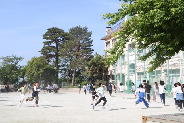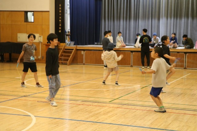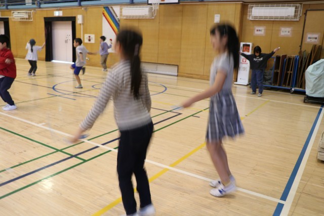 今朝の朝遊びは6年生が校庭、3年生が体育館、1・2年生が屋上でした。運動タイムは校庭の6年生がランランランをし、3年生は体育館で縄跳びをしています。音響設備があまりよろしくなく体育館には小さな音しか聞こえませんが、子どもたちは元気いっぱい体を動かしていました。音響設備を何とかしなくてはなりません。