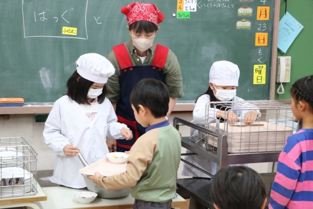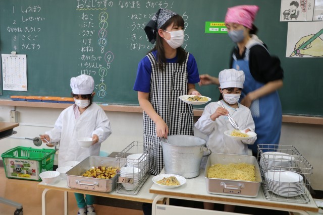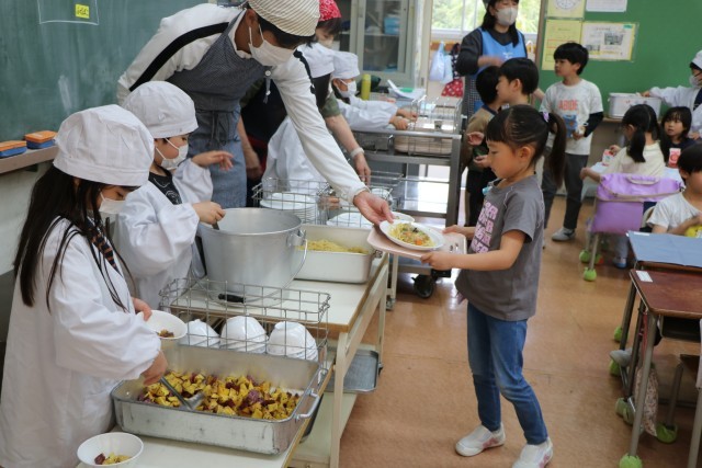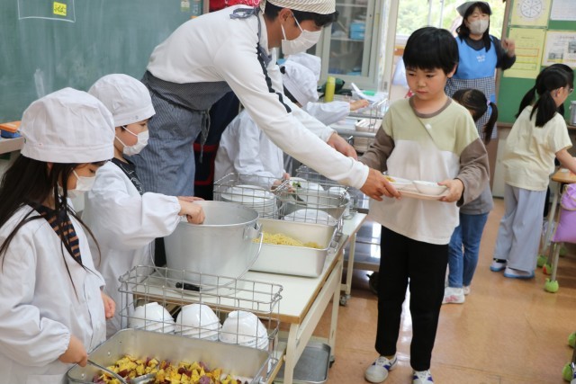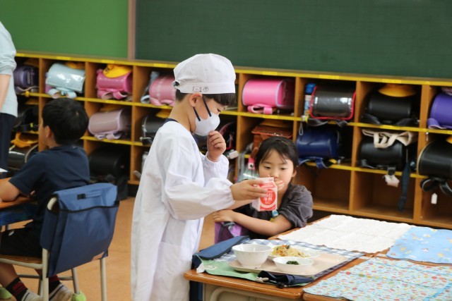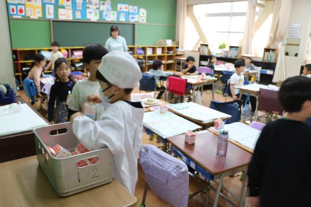 出張で校外に出ていることが多く、1年生の給食配膳の様子を今週初めてて見に行きました。1年生サポーターや専科の先生など大人の方がまだしばらくお手伝いしてくれます。食器を落としてしまったり、こぼしてしまったり失敗しながら少しずつ上手になっていきます。