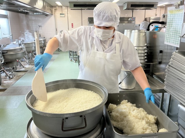 給食では月に一度有機米のごはんを提供しています。有機米はこどもたちからも好評です。