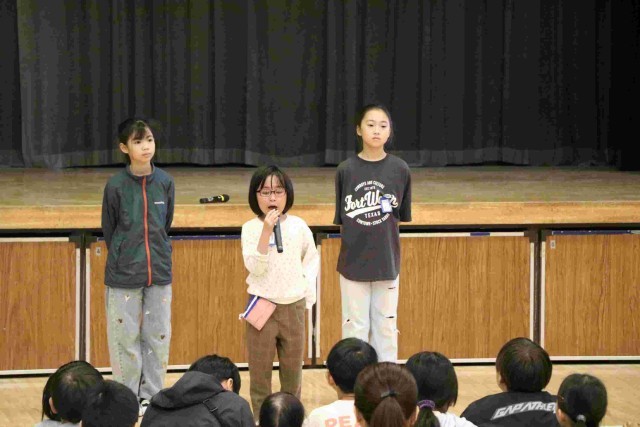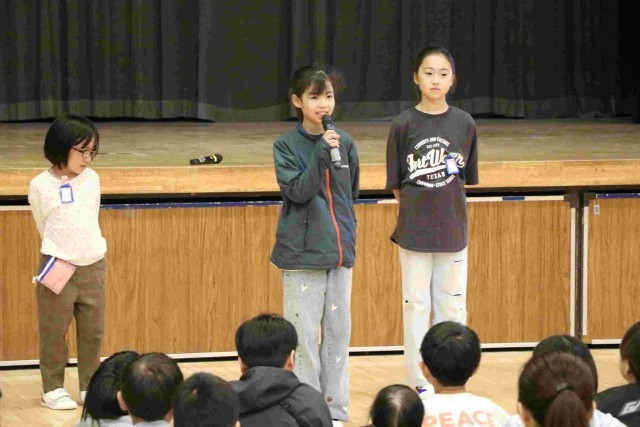 幼稚園・保育園のみんなは「楽しみ」と「ドキドキ」の両方で来たそうですが、迎える5年生も同じです。司会進行のもと、はじめの会が進んでいきました。