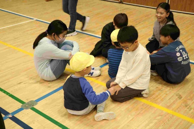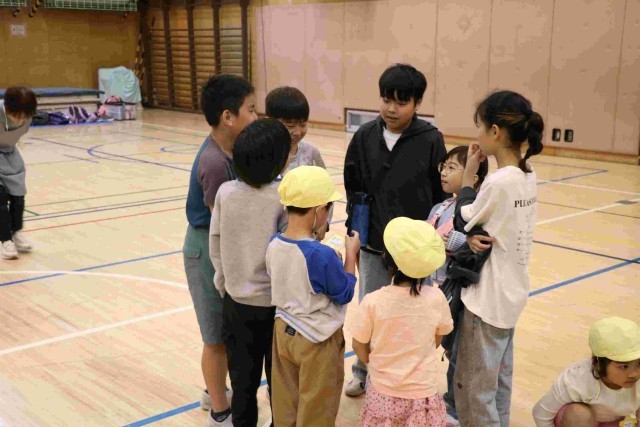 5年生は、家庭科の学習で地域の園児の生活について学び、それを生かして、総合の学習で幼保小交流のめあてや接し方、遊びの内容を考えてきました。