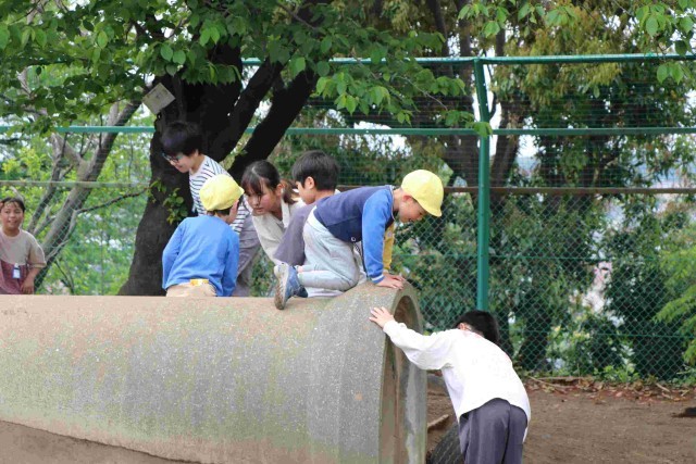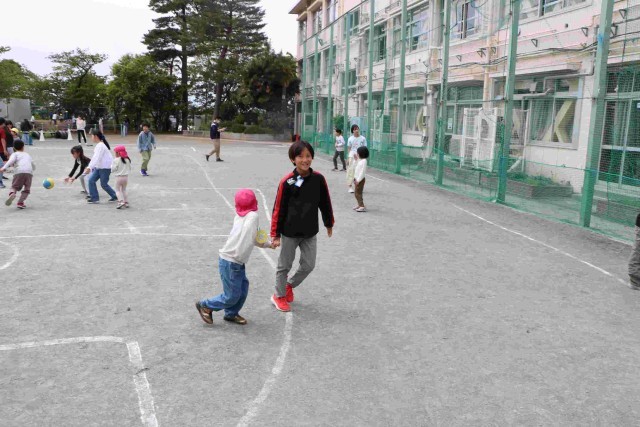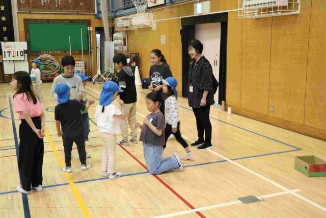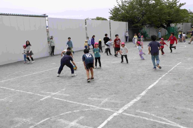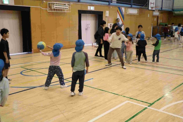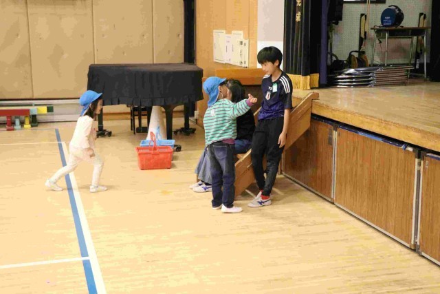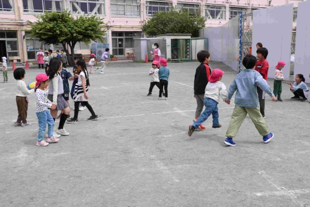 園児の安全を考えてボール遊びのルールをやさしくしたり、園児のみんなが楽しそうにしているか様子を見ながら2つ目の遊びをしたりして、学習と準備が生かされていました。5年生、立派です!